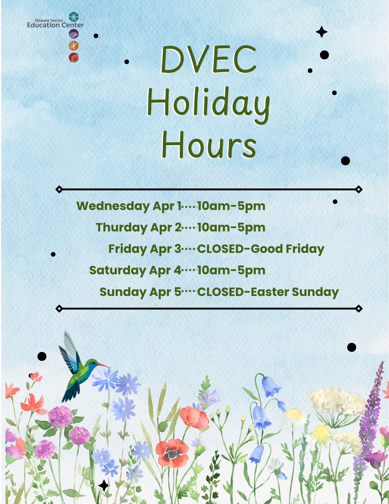 The Disease Vector Education Center is a vibrant and immersive science hub that’s fun for everyone, from little ones to adults! Even if you aren’t a fan of bugs, we guarantee you’ll have a great time at our education center!