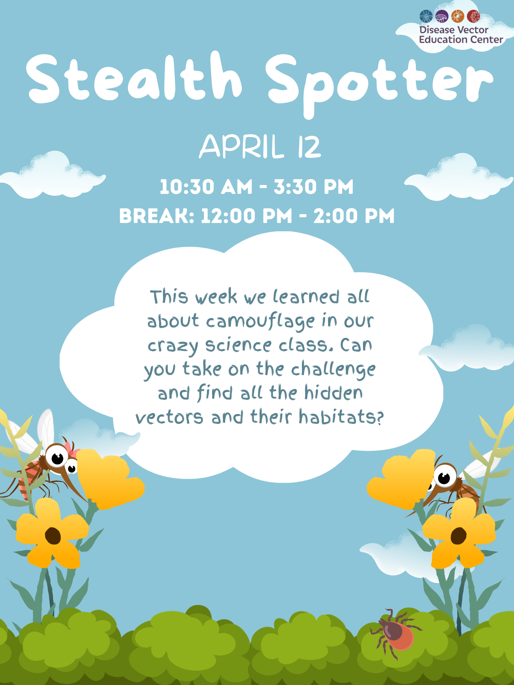 🔍Sunday Funday: Stealth Spotter   Put your observation skills to the test at the Disease Vector Education Center in this camouflage-themed challenge. Search the center to find hidden vectors, identify […]