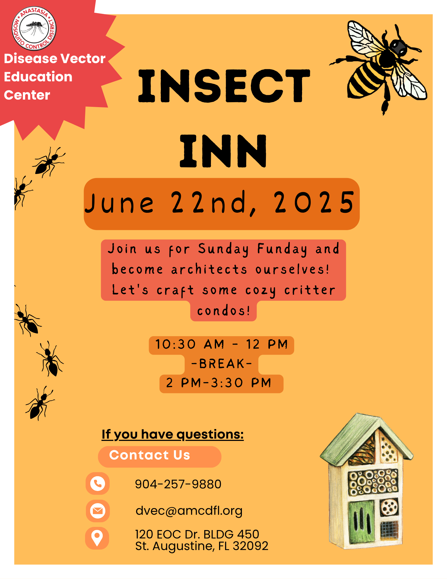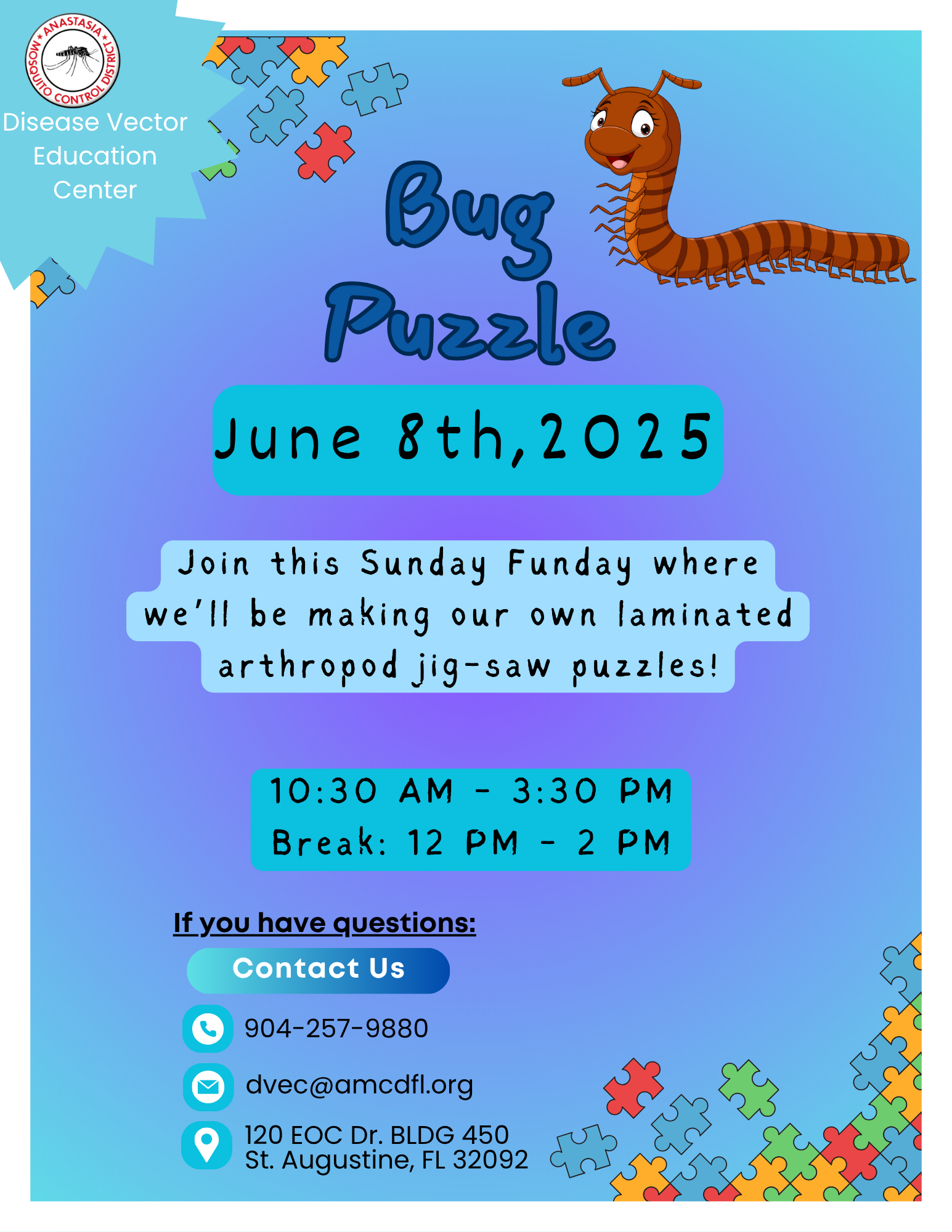 Join us for Sunday Funday. 🗓️ June 15th, 2025 ⏰ 10:30 AM – 12 PM Break: 12 PM – 2 PM 2 PM – 3:30 PM 📍 Disease Vector Education Center – St. Augustine, FL This Sunday we’re celebrating father's day! This week we got to learn about all the cool things arthropod dads […]